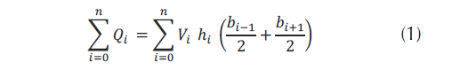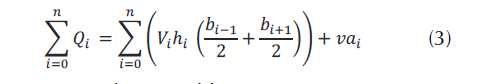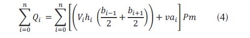 Where: i = sections defined in the riverbed, Q = value of the flow in a section i, V = velocity of the flow in the section i, h = height of the section i, and b = section half taken to divide the sections
