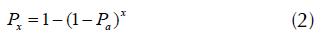 El comportamiento de la probabilidad de ocurrencia será expresado matemáticamente mediante la ecuación (2).