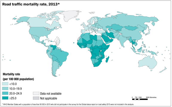 En función de lo anterior, la figura 1 muestra las cifras de la Organización Mundial de la Salud (2016) relacionada con el número de decesos por accidentes viales a nivel global.