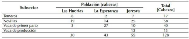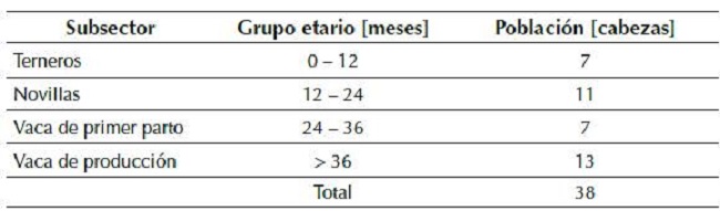 La cuantificación y clasificación del ganado presente en la finca se realizó por grupo etario de acuerdo con el estudio sectorial de carne bovina en Colombia presentado por la Superintendencia de Industria y Comercio. Los resultados se muestran en la tabla 1.