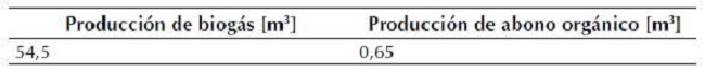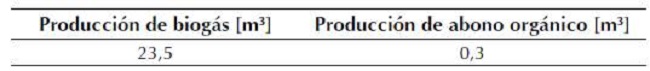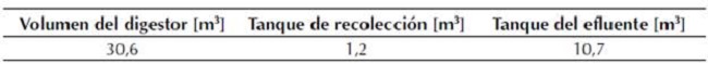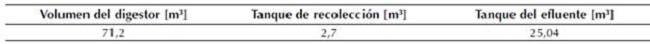 De acuerdo con los cálculos correspondientes al sistema de biodigestión descritos en Ladino y Martínez (2016, p. 129), en la tabla 14 se muestra las dimensiones del biodigestor, los tanques de recolección y del efluente. En la tabla 15 se indica la producción de biogás y bioabono diario producido a partir de la digestión del estiércol.