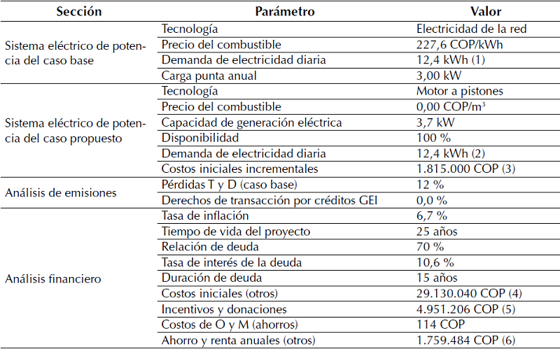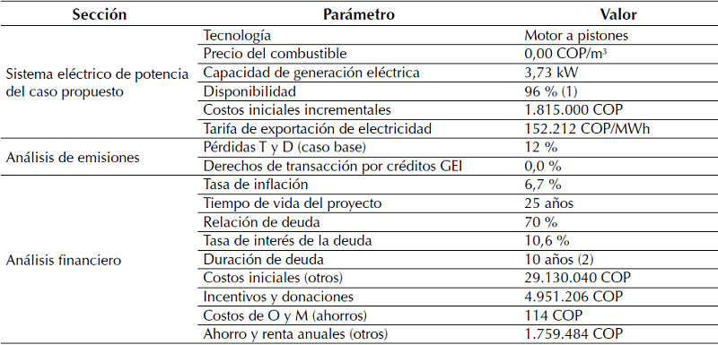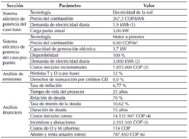 De acuerdo con los resultados de la simulación en RETScreen, se puede observar que para ambos casos de estudio la viabilidad financiera presentó mejores resultados en los proyectos de red aislada, dando como resultados una TIR 63,7 % superior, un repago de capital 12,9 años menor y una relación beneficio/costo 29,5 unidades mayor respecto al proyecto fuera de red para el caso Briceño; y para el caso Cajicá, una TIR 64,7 % mayor, un repago de capital 5,2 años menor y una relación beneficio/costo 27,2 unidades superior respecto al proyecto fuera de red; esto debido a que el programa consideró como ingresos la venta total de la energía entregada a la red, la cual es mayor que la energía consumida por las fincas en cada caso de estudio (electricidad generada por el motor de 4,3 MWh superior respecto al proyecto fuera de red para el caso Briceño, y de 26,4 MWh superior respecto al proyecto fuera de red para el caso Cajicá).