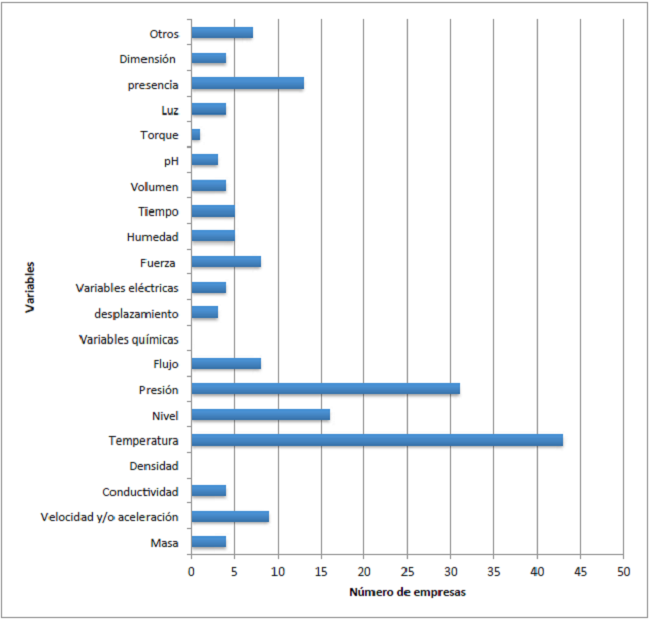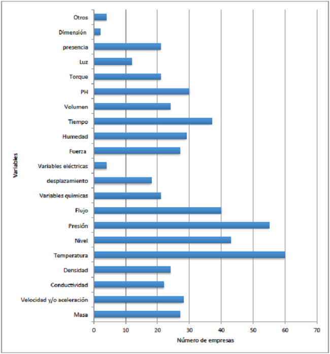 Las variables que reportan con más equipos medidores en un proceso productivo son: 1) temperatura, 2) presión, 3) nivel (figura 3).