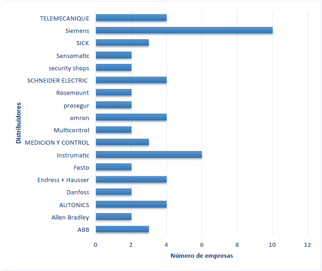 De igual manera, se indagó acerca de las empresas proveedoras de la mayor cantidad de sensores para cada caso; como resultado, Siemens se ubica en primer lugar, seguido por Instrumatic (figura 4).