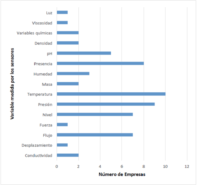 Results: It is possible to identify some distinctive aspects of the industry, such as the economic sectors in which companies most use sensors, the identification of the most measured variables, and particularly which sensors are the most used to measure these variables. Additionally, it was possible to determine which are the main suppliers of sensors in Colombia.