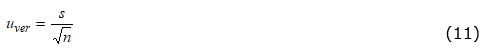 Para la incertidumbre por verificación se adoptó para el cálculo la ecuación (11), método de evaluación tipo A (Delgado y Hernández, 2009).