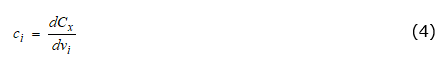 Los coeficientes de sensibilidad se determinaron con la ecuación (4), derivándose la función Cx definida en la ecuación (1), respecto a la componente (vi ) cuyo coeficiente se quiere calcular.