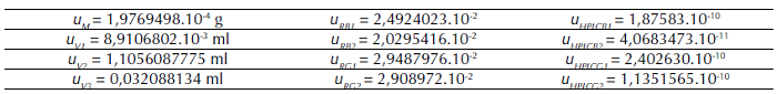 Los resultados de las incertidumbres estándar obtenidas se presentan en la tabla 2.