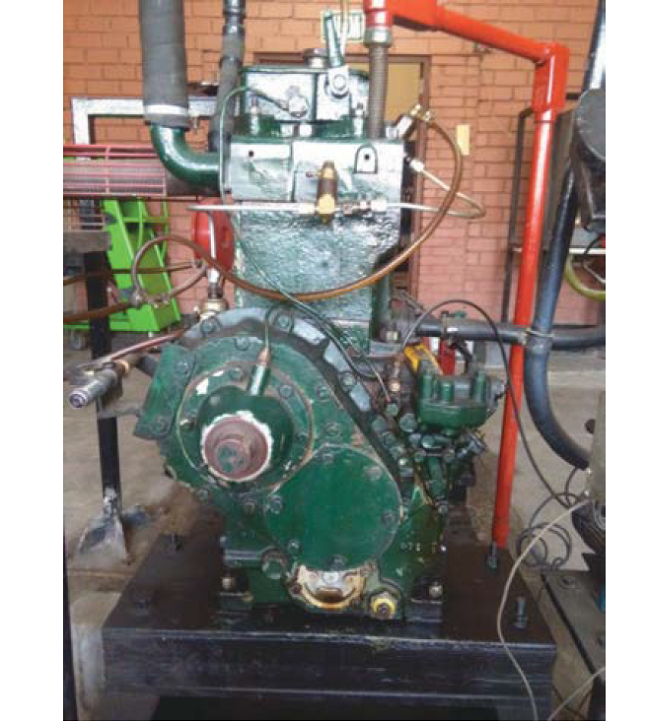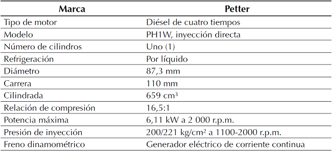 Los experimentos se realizaron en un motor diésel de cuatro tiempos y un cilindro (figura 2). Las especificaciones del motor se detallan en la tabla 1. El motor provee una potencia máxima de 6,11 kW y está unido a un dinamómetro eléctrico de corriente continua, para controlar la velocidad de rotación y la carga aplicada.