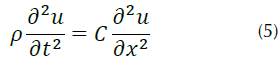 La ecuación general de onda para el movimiento de una partícula de material perfectamente elástico, de tamaño infinitesimal y para desplazamientos de primer orden está dada por la ecuación (5).