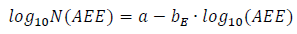 Siguiendo a Sagasta et al. (2018), se presenta una adaptación de la ley de Gutenberg-Richter usada en sismología. En este contexto, la EA se interpreta como sismología de pequeña escala. Para ello se considera la energía wavelet (AEE) de cada señal reconstruida luego del filtrado (ecuación (5)).