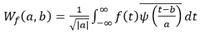 (3)En el caso en que a ( 0, mientras que Wf (0,b) = 0. La integral definida por la ecuación (3) compara la función f(t) con la Wavelet ((t) después de un cambio de escala y una traslación temporal. De esta forma, el valor Wf (a,b) mide la componente en frecuencia de la señal f(t) proporcional a (1/a) y localizada en torno al tiempo b.