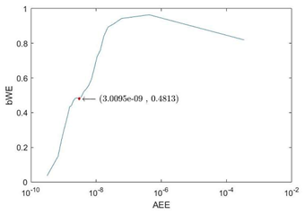 El estudio de la evolución del bWE para las distintas bandas de frecuencia sugiere la existencia de energías características que se pueden asociar a distintos mecanismos de fracturas en las rocas. Los mínimos locales de bWE (figura 15) identifican estos valores críticos de AEE.