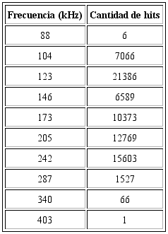 La frecuencia característica obtenida mediante la CWT resulta consistente con los resultados para la frecuencia esquina (ver tabla 2, donde se hace el conteo de hits a diferentes frecuencias).