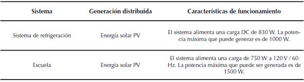 La microrred empleada para el estudio de caso se describe en la tabla 1. A partir de esta información se modela y se realiza la simulación, de manera que se pueda analizar el sistema actual y, posteriormente, planear los posibles casos de expansión (Bueno-López y Garzón-Lemos, 2017).