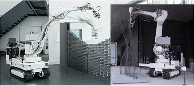 En la Escuela Politécnica Federal de Zurich (ETHZ), investigadores elaboraron una pared de madera con pequeñas piezas de distintos grosores en el año 2012 y una pared en ladrillo con forma de onda en 2016. Para ello se emplearon dos plataformas móviles: dimRob (Helm, Ercan, Gramazio y Kohler, 2012) e IF (Dörfler et al., 2016). Si bien el concepto de estos dos sistemas es el mismo, IF trae algunas mejoras sobre su predecesora dimRob; su precisión aumenta y la intervención humana se reduce considerablemente ya que no tiene que ser reposicionada manualmente.