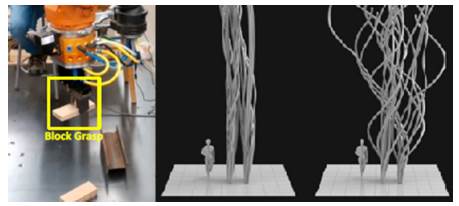 Bhooshan, Ladinig, Mele y Block (2019) proponen utilizar un brazo robótico que realice un proceso de impresión 3D por capas a gran escala utilizando concreto, generando así una estructura esquelética en este material. A diferencia de imprimir capa por capa de forma vertical (método convencional) desde un robot industrial, Zhang et al. (2015) sugieren un generador de ruta para superficies curvas, imprimiendo en ángulo estas mismas.