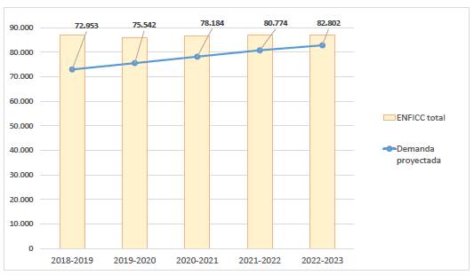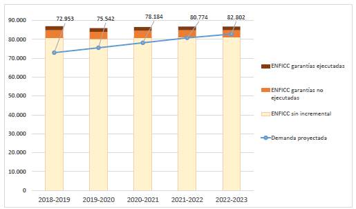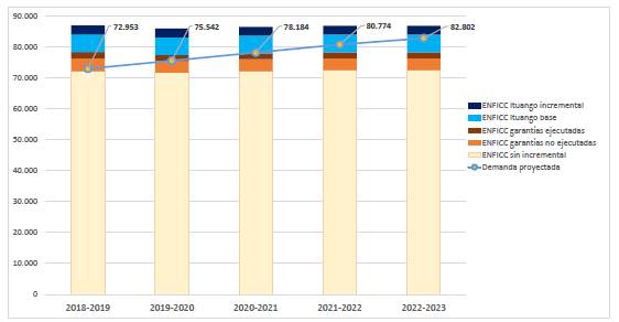 La figura 2. corresponde al análisis comparativo con la desagregación de las ENFICC incrementales mencionadas anteriormente, y la demanda proyectada para cada una de las vigencias bajo estudio.