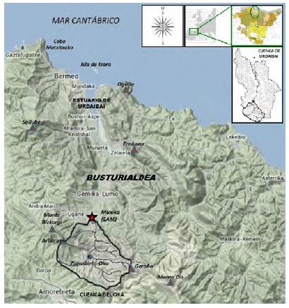 El área de estudio está ubicada en la unidad hidrográfica del Oka, este río realiza la más importante aportación de agua y material en suspensión desde el continente hasta su desembocadura en el estuario de Urdaibai (figura 1), el cual fue reconocido por la Unesco en 1984 como reserva de la biosfera de Urdaibai, por su extraordinaria abundancia ecológica (Montoya, 2013).