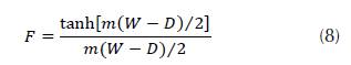 Este es el factor de aleta. En las ecuaciones (7) y (8), Di es el diámetro interno del tubo; Cb, la conductancia de la soldadura; m es un parámetro que reúne a UL y otras constantes; hfi es el coeficiente de transferencia de calor entre el fluido y la pared del tubo por convección; W es la distancia entre los tubos del colector, y D es el diámetro exterior de cada tubo.