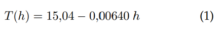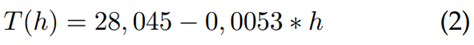 Where T is the temperature in degrees Celsius (°C), and ℎ is the altitude in meters (m).