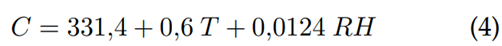 According to the information provided by these stations, there is a direct correlation between the relative humidity and temperature of a place and the speed of sound in said place. Figure 5 shows this behavior.