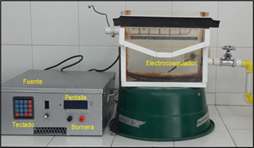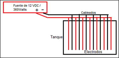 En cuanto a los valores de corriente en los ensayos de EC, estos fueron obtenidos por medio de una fuente de voltaje DC de corriente variable de 360 W. Así, se estableció un voltaje constante de 12 V DC y la corriente (amperaje) era un parámetro variable, dependiente de las condiciones del agua y de las reacciones químicas que surgen durante el tratamiento.