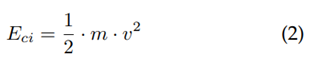 Where Ec is the impact kinetic energy (J); P is the amount of movement (Kg*m/s); v1 is the speed of vehicle 1 before impact (m/s)v2 is the speed of vehicle 2 before impact (m/s);u1 is the speed of vehicle 1 after impact (m/s); u2 is the speed of vehicle 2 after impact (m/s).
