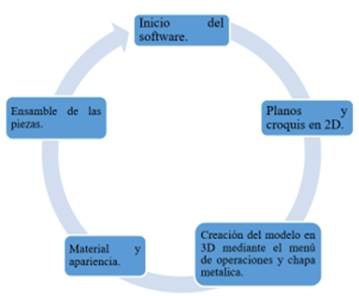 Figure 1 shows the process followed to design the attenuator and the complementary components using the SolidWorks 2017 software.