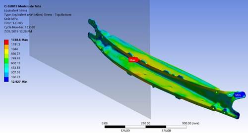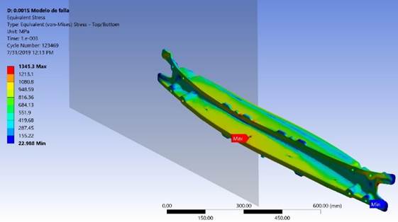 Conclusiones: Mediante la simulación del impacto frontal en el módulo de Explicit Dynamics del software Ansys Workbench se pudo evaluar el modelo virtual, simulando las condiciones en la que se da un choque frontal real. Así se determinó que la geometría y el material seleccionado cumplen los requisitos para la implementación en un vehículo.