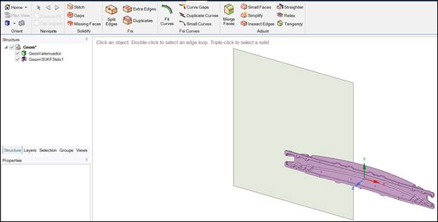 To simulate the impact attenuator in the Explicit Dynamics environment, the model is imported to the IGES extension (surfaces) because it makes it easier to include the thickness value and is more compatible with the software when defining the meshing.