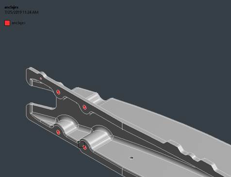 Once the proper meshing is selected, we defined the attenuator anchors in the holes where the clamping bolts go because the highest concentration of stress will be found on those points.