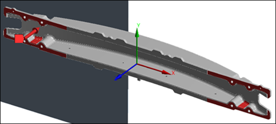 Once the model is exported, we used the SpaceClaim editor to open it, entered the attenuator thickness, and created the deformable barrier according to the Latin NCAP for front crashes. The created barrier will be simplified as a rigid wall (see Figure 5).