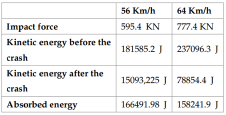 Where: m1 is the total mass for vehicle 1 (Kg), and m2 is the total mass for vehicle 2 (Kg). In addition, vehicle 2 at rest and twice as much was considered to simulate a rigid wall.