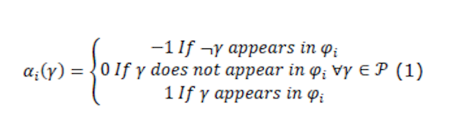 Step iii: To derive appropriate formal descriptions equivalent to the conditions expressed in Equations (4) and (5), a generic subset S⊆2 ^ Π is considered. It is desired that the set of active observations in a mark m is included in S. The set S can be seen as a disjunction of conjunctions of propositions of Π to convert it into a Conjunctive Normal Form (FNC) by double negation, that is, the observations in m should not belong to 2Π / S. By already having the FNC set, it can be used to write a set of inequalities that hold simultaneously so that the observations in m belong to S (Martínez et al., 2018).