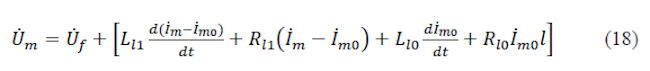 where, U̇ 𝑚,𝑚 and 𝐼̇𝑚,𝑚 are the memory voltage and memory current; and U̇ 𝑚,𝑓 and 𝐼̇𝑚,𝑓 are the measured voltage and measured current after a fault, respectively. Next, if U̇ 𝑚, after the fault is higher than Uset , a distance (𝑙) from the relay location to the fault point is calculated based on the R-L differential-equation algorithm, as given by Equation (18). If the estimated distance 𝑙 is larger than the setting value 𝑙𝑠𝑒𝑡, it is an external fault. If 0 <𝑙<𝑙𝑠𝑒𝑡, it is an internal fault. If the estimated distance, 𝑙, is negative, it is an external fault. If the U̇ 𝑚 after the fault is lower than U𝑠𝑒𝑡 the previously described method is used to detect the fault direction.