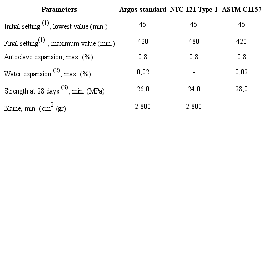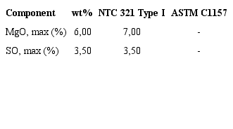 Ordinary Portland cement from Cementos Argos was used in this study. Its physical and chemical properties are summarized in ¡Error! No se encuentra el origen de la referencia. and Table 2. Following the ASTM C494 standard (ASTM International, 1999), two different type F additives were used: additive 1 (A1), based on polycarboxylate; and additive 2 (A2), based on naphthalene. Both were used at 0,8 and 1,0 wt% contents with respect to the amount of cement. The contents of these additives were selected based on the recommendations given by the manufacturers. Moreover, two aggregate types supplied by Conasfaltos were used, which were obtained from a local quarry near Medellín. The characterization data provided by the company are shown in Table 3, and the gradation is shown in Figure 1.