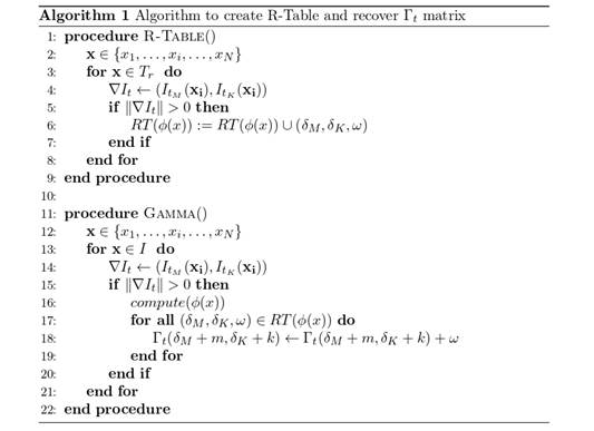 is greater than zero, thus ensuring the computation of edges with high probability of belonging to polyp tissue. According to the feature domain, these distances are indexed by defining feature bins (ϕ(𝑥𝑖)), forming a Representation Table RT(ϕ(𝑥)), which allows for an effective polyp description. Figure 1b illustrates this process, and Figure 2 depicts a function defined as R-Table().