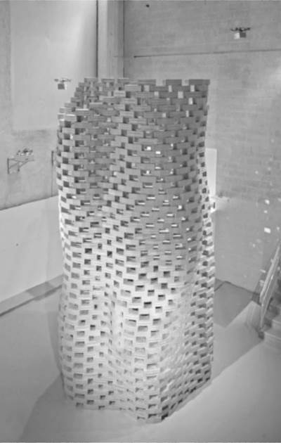 En el trabajo presentado en Willmann et al. (2012) y Augugliaro et al. (2014), se construyó una torre de seis metros de altura, con 1500 ladrillos de espuma (figura 1). La construcción de la estructura fue ejecutada por una flota de cuadricópteros, la cual empleó sensores como cámaras, GPS y lídar, para guiar a cada uno de los vehículos a locaciones específicas para recoger y dejar los módulos (ladrillos). Cada uno de los cuadricópteros contaba con una pinza para poder manipular los módulos, y eran guiados por un algoritmo que traducía el diseño computacional de la torre (geometría compleja) a puntos en el espacio.