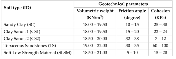 Table 2 shows the geotechnical parameters of the terrain, obtained with field and laboratory tests.