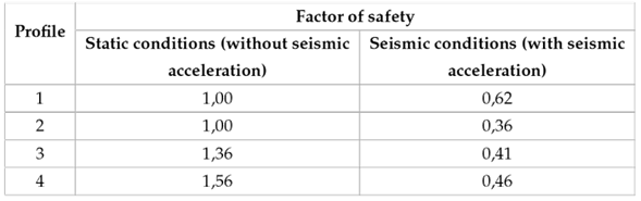 Stability analyzes were performed using methods based on limit equilibrium, enabling the identification of the potential landslide surfaces along with their corresponding factors of safety (Table 4). The effect of seismicity activity on instability was accounted for by integrating the analysis the seismic accelerations of the ground, as outlined in the complementary technical standards of the state of Baja California (NTC, 2017), as well as their amplification by site effect (Acosta-Chang et al., 2009). Also, in the static condition, a 50 % saturation of the land was considered to evaluate the influence of the small underground water flows detected in the study area.