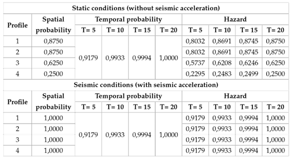 The landslide hazard in the profiles of Figure 6 was evaluated based on spatial and temporal probabilities, using equation (3)