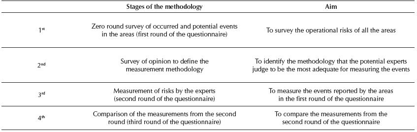It is important to highlight that successive applications of this methodology will result in the experts being more mature in relation to operational risk and will consequently increase the quality and precision of the measurements carried out.