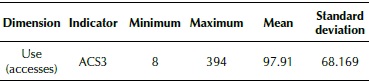 The intensity of the use of the Production Guide management report was observed via the quantity of accesses made by the sales agents in the third quarter of 2016, these therefore being secondary data. Table 4 shows the quantity of accesses by the whole population of managers, not only the sample that participated in the survey. The choice of the third quarter of 2016 is justified for being the most recent date to the time of the study, not containing any abnormality.
