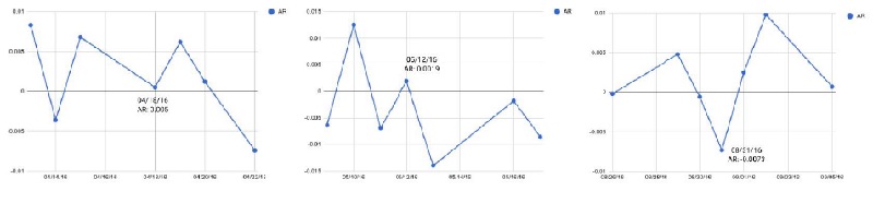 According to the results, it might be intuitive to believe that the markets seemingly adjusted on a continuous and immediate basis to new information provided. There would be no information asymmetry, or anything of the sort, to generate abnormal returns or accumulate significant abnormal returns.