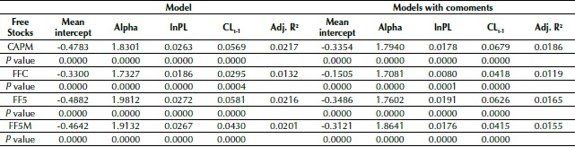 The results of comparing the models, in turn, demonstrate that FFC and FF5M showed the greatest explanatory power, a fact that corroborates the significance of momentum to specify investment portfolio returns. The lower CAPM performance is due to its anomalies and limitations, which were not eliminated after the insertion of comoments.