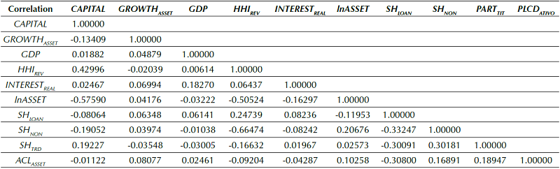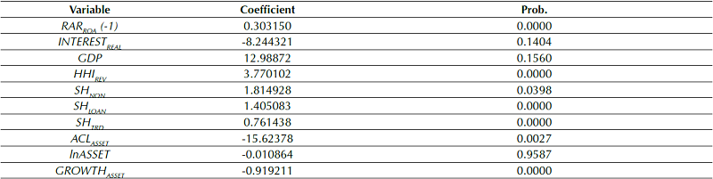 CAPITAL showed a positive, statistically significant relationship with Z SCORE at the 1% level. This result suggests that banks with better capital levels have a greater capacity to reduce their bankruptcy risk. In addition, this variable presented a positive relationship with RAR ROA , suggesting that a better capital level positively affects the bank’s risk adjusted return.
