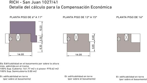 Para la determinación de la compensación económica se computa el 100% (cien por ciento) de la superficie cubierta involucrada y el 50% (cincuenta por ciento) de la superficie semicubierta. Los valores de edificación por metro cuadrado establecidos para el cálculo de la compensación económica originada por el mayor aprovechamiento resultante de la ejecución de proyectos especiales, (así como también por mayor aprovechamiento en altura) son anualmente actualizados por el Departamento Ejecutivo y publicados en el Boletín Oficial al momento de su actualización anual.