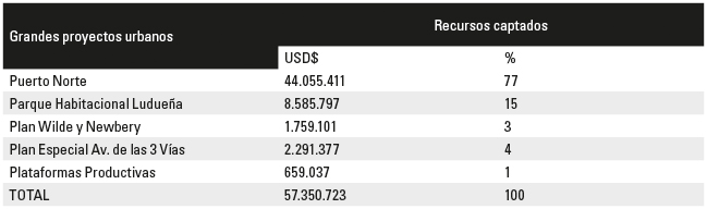 En primer lugar, entre 2004 y 2013, se firmaron 240 convenios correspondientes a proyectos edilicios regulares en distintas áreas de la ciudad (área centro, áreas de completamiento, corredores urbanos, primer anillo perimetral) y a grandes proyectos urbanos. A través de éstos se recaudaron poco más de 80 millones de dólares norteamericanos. En relación con el exiguo presupuesto municipal ejecutado en 2012 (que ascendía a los 548 millones de dólares norteamericanos) los fondos captados por la Contribución Compensatoria representaron una proporción significativa del casi un 15% (ver tablas 1 y 2).