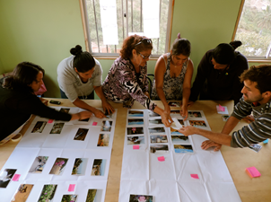 En cuanto a las prácticas mismas para hacer hogar, el esfuerzo puesto en las tareas diarias se asocia en cierta medida a sentimientos negativos. A través de fotodiarios en los que las mujeres registraron sus actividades diarias, fue posible identificar y discutir sobre estas prácticas. Las fotografías hicieron visibles prácticas reproductivas, muchas veces monótonas y tediosas, como también el ingenio para desempeñar sus múltiples roles -no solo el reproductivo, sino también productivo y comunitario-. Algunas de las prácticas identificadas fueron: largas jornadas de trabajo dentro y fuera de la vivienda, dificultades de movilidad en el asentamiento debido a la topografía del terreno y el desafío de llevar a cabo las tareas domésticas como lavado de ropa y aseo por el escaso acceso a agua y electricidad.